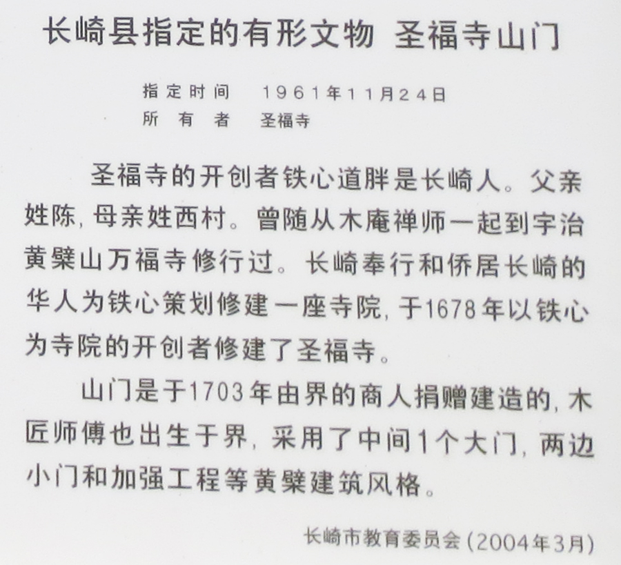 聖福寺,由長崎華僑於1678年所捐建,位於西勝寺左後方,步行約五分鐘,同屬江戶時代的寺廟,因為有山丘阻擋,
